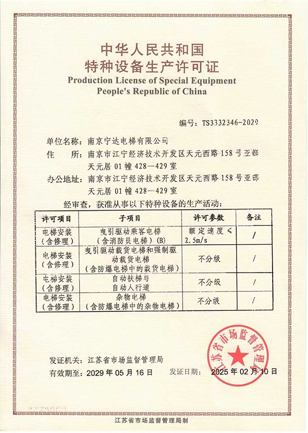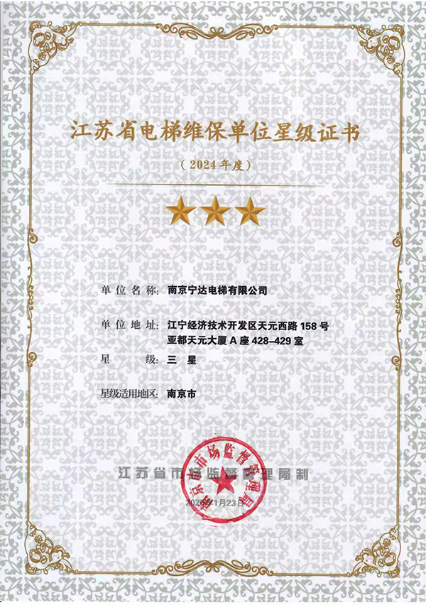 南京宁达电梯有限公司成立于2008年,位于南京市江宁区天元西路158号亚都天元大厦A幢428-429室,公司注册资金1100万元,主要合作销售、安装、维保国际、国内一线品牌(美的菱王、东芝、上海三菱、杭州西奥电梯等)。拥有价值为500多万元的配件仓库。中国特种设备安装、改造、维修许可证为:TS3332346-2025,为南京电梯安全管理协会的会员单位,连续多年被评为南京市三星级服务单位,并且是江宁地区电梯应急网络处理中心(96333)的指定服务单位。
